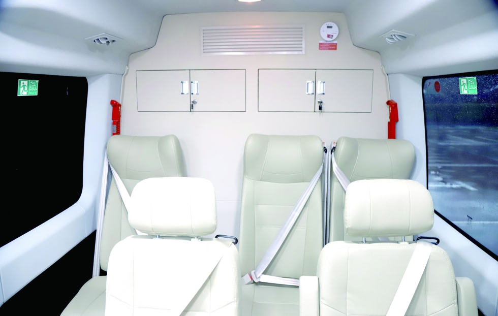 宇通牌中型勘察消防车采用依维柯车型改制,具有视频监控、移动办公、装备运载、照明系统等功能,用于火灾调查取证等工作。