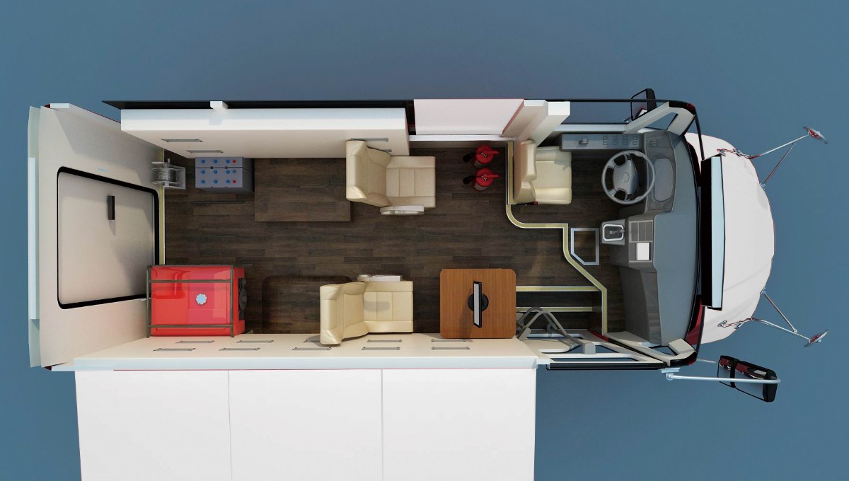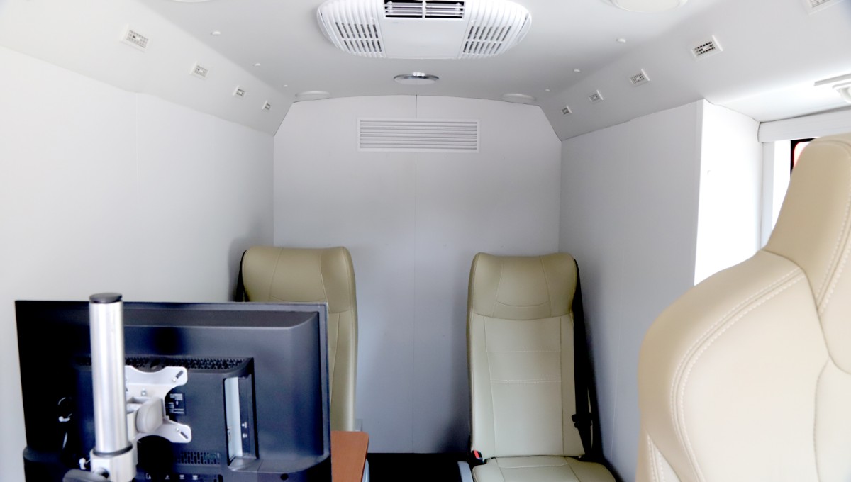 车辆由车顶、车内、车外三部分组成。车顶部分:主要设置行车空调、驻车空调、对外音频宣传设备等。车内部分:主要设置网络办公系统。