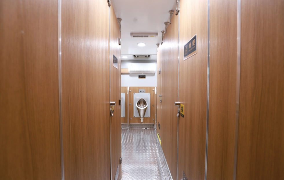 宇通牌盥洗车采用汕德卡二类底盘改制,配置大容量净水箱、水路系统、真空集便系统等,为战士提供便捷如厕等保障服务。