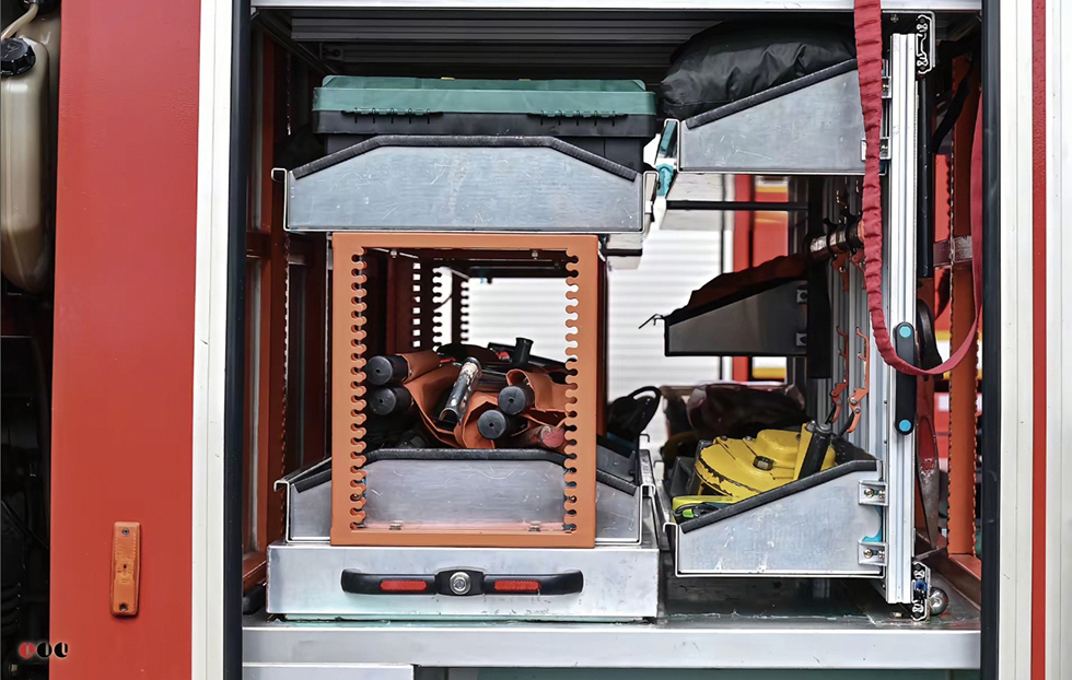 宇通牌泡沫消防车采用汕德卡二类底盘改制,配备整体式厢体结构,加强型钢制底骨架、铝合金搭接上骨架,兼顾强度和轻量化。不锈钢载液罐体内设纵横防荡板结构,底部加强型纵向托梁,安全稳固。夹心式全功率取力器驱动后置消防泵,作业效率高。配备消防泵、消防炮、升降照明、电动绞盘等装置,满足多环境下灭火、救援、照明等功能。