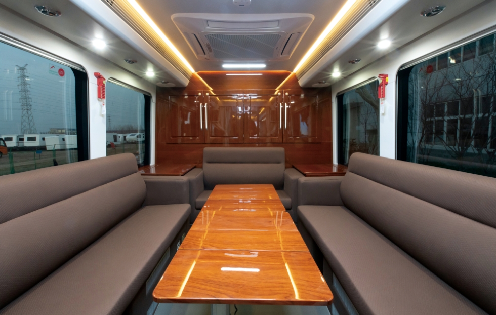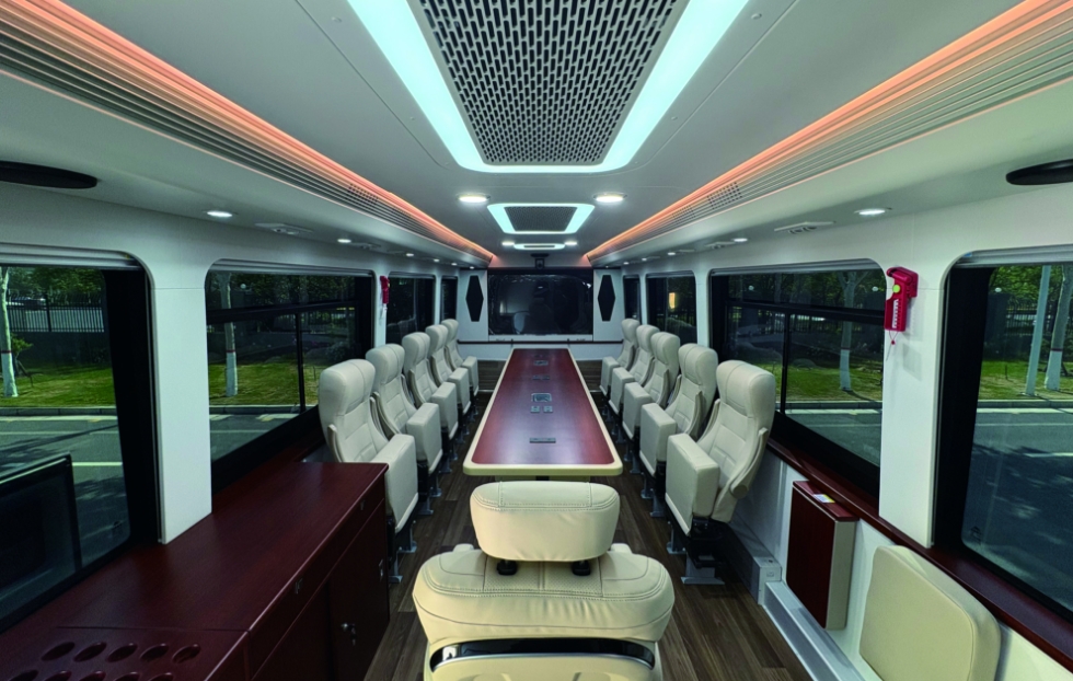 宇通牌通信指挥现场值守车车采用大型客车平台改制,车辆集成卫星通信、无线图传、视频会议等系统,可建立现场与地面指挥中心相连通的应急通信专网,用于实现突发事件现场的视频、数据、语音实时传输,实现现场指挥、案情研判、调度等功能。
