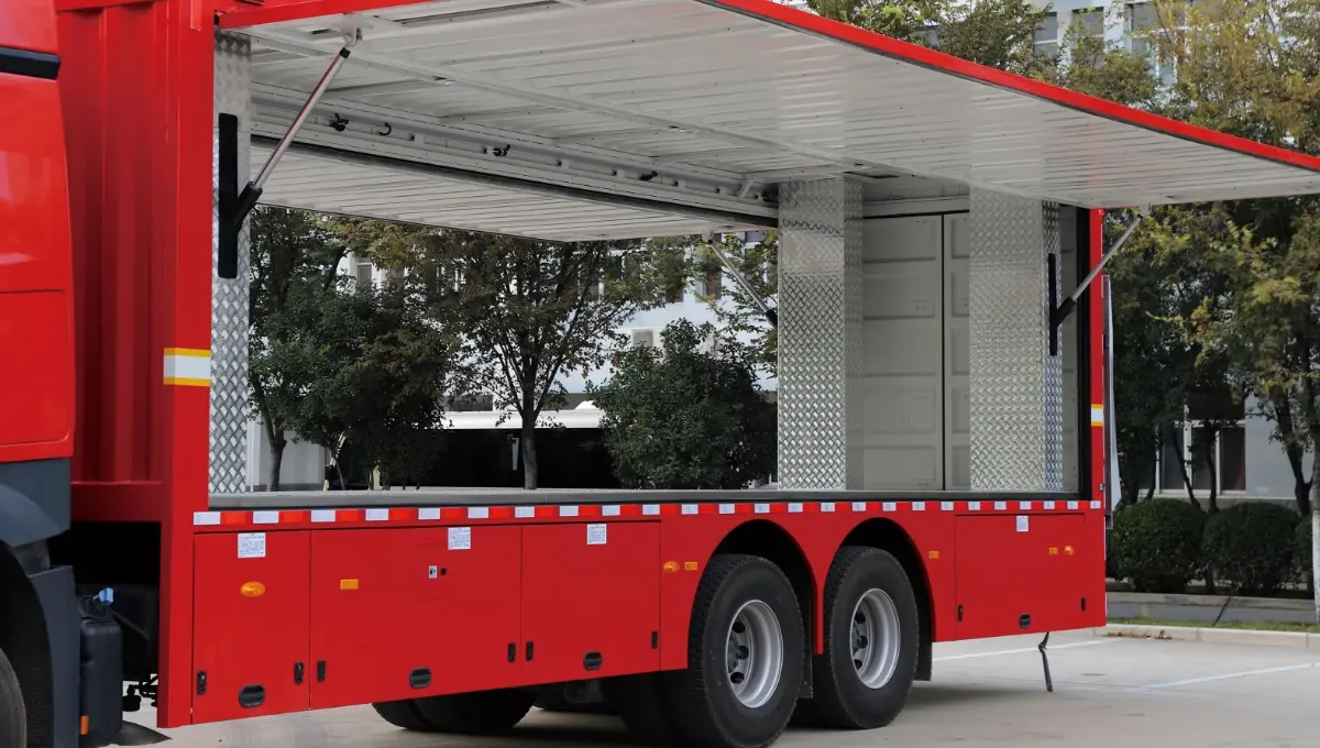 厢体采用厢型钢骨架,合金铝板蒙皮结构,强度高、稳定性强,保证了运输过程的安全性。车辆具有高速机动、运输能力强、安全性高等特点,可高效保障消防救援装备运输需求。