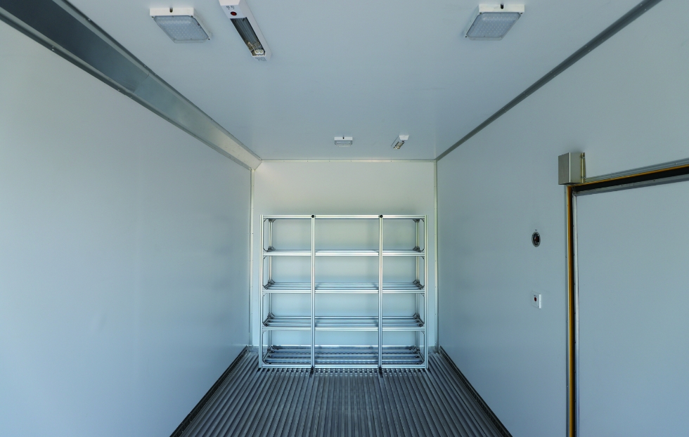 该冷链保障车采用汕德卡底盘改制,承载能力强。采用隔断式包边结构,完全阻断厢体内外冷量的传递,大大提高了厢体的密封性及保温性。高质量保温厢体经测试,低温可达-20℃,确保产品保鲜。