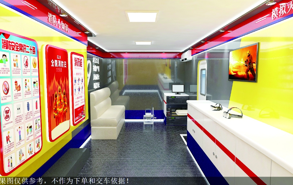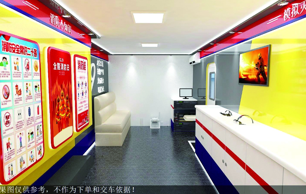 宇通拖挂型宣传消防车采用机动化拖挂平台改制,搭载消防互动游戏系统、消防救援器材展示系统、多媒体宣传系统、火灾隐患排查系统等,车辆采用拖曳式转场,机动高效,造型亲民,用于消防知识宣传教育,提升民众消防意识、逃生自救、救援灭火、防范自救等应急处理能力。